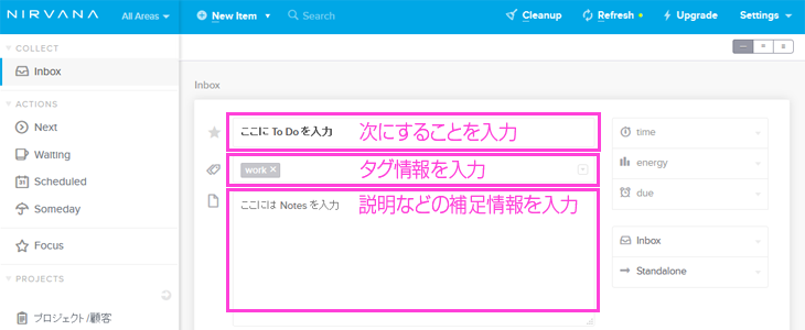 inboxにガシガシ入力して、頭の中をクリーンな状態にしていきましょう。